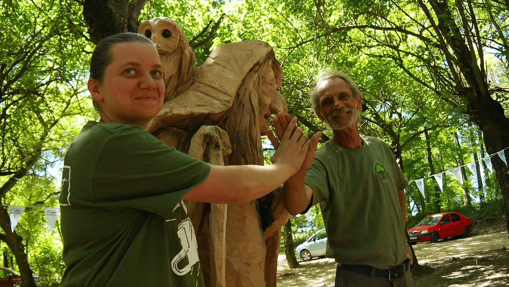 Elvarázsolja az embert a látvány: ezek a kemény munkára készített gépek milyen csodára képesek, ha a megfelelő ember kezébe kerülnek! A faragó mesterek közül Bálint Józseffel, Józsi bácsival – és Katona Szonjával beszélgettünk sokat, akár estig hallgattuk volna őket! Ezek a művészek egyelőre többet tesznek ezekbe a rendezvényekbe, mint amennyit kapnak, de olyan megszálltsággal és szeretettel végzik munkájukat, hogy minden reményük meglehet arra, hogy egyszer majd olyan elismert és népszerű legyen a munkájuk, mint például az Egyesült államokban, ahol ennek a művészeti ágnak már komoly hagyománya van. Józsi bácsi hosszan mesél arról, hogy faragás közben úgy szárnyalhat a fantáziája, mint régen kisfiúként, amikor még az elképzelt világokban kalandozott, és végtelenül örül, hogy unokáján ugyanezt a lelkes álmodozást látja, mikor körülötte és a szobrai körül játszik. Szonja is a családjával van itt, és sokan mások is, ami igazán megkapó, hogy ezen a helyen minden korosztály jól érzi magát; hiszen a gyermekek a saját mesevilágukat élik meg, a felnőttek, és idősebbek pedig picit újra fiatalok lesznek úgy, hogy a mesevilág, amit látnak valódi művészeti alkotásokkal van tele.